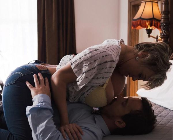 Busty Stepmother Pushed Her Stepson Onto The Bed And Fucked Him