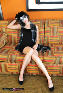 Masked model showing off her leggy figure at American X Girls